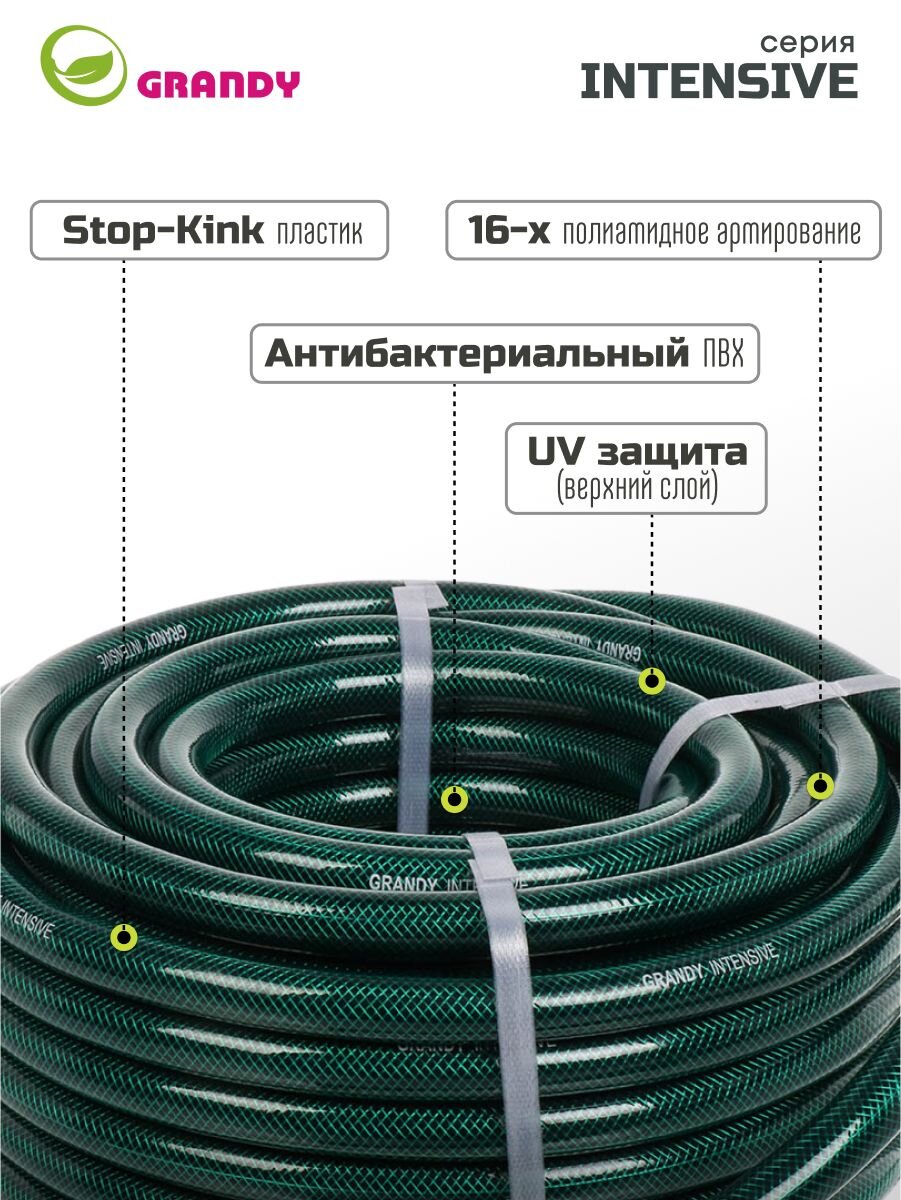 Поливочный шланг марки Grandy обладает всеми необходимыми характеристиками идеального шланга. Он прочный, гибкий и устойчив к перегибам, что позволяет использовать его в разных условиях. Материал успешно противостоит воздействию ультрафиолетовых лучей, что помогает предотвратить его выцветание и повреждение со временем.
