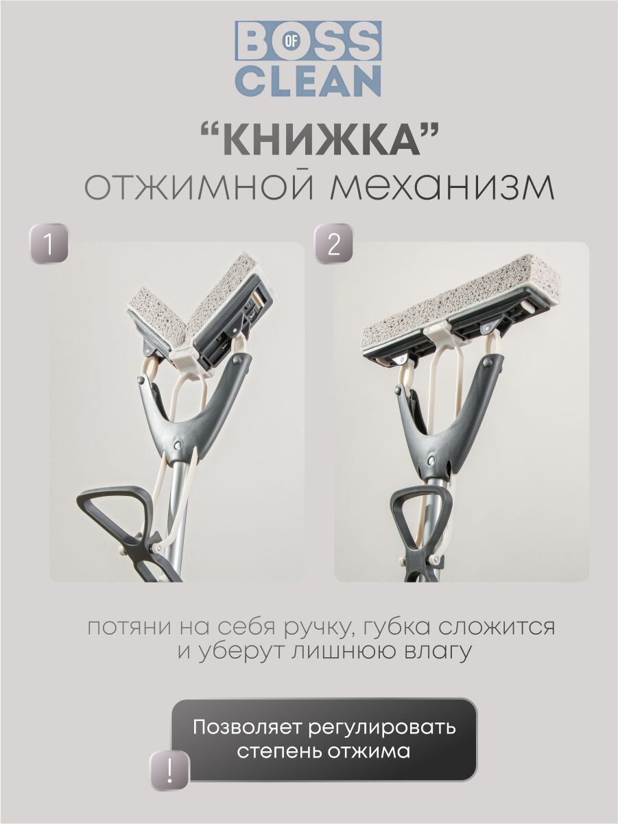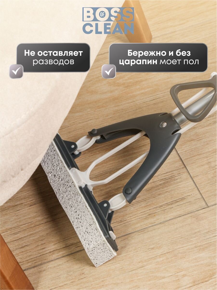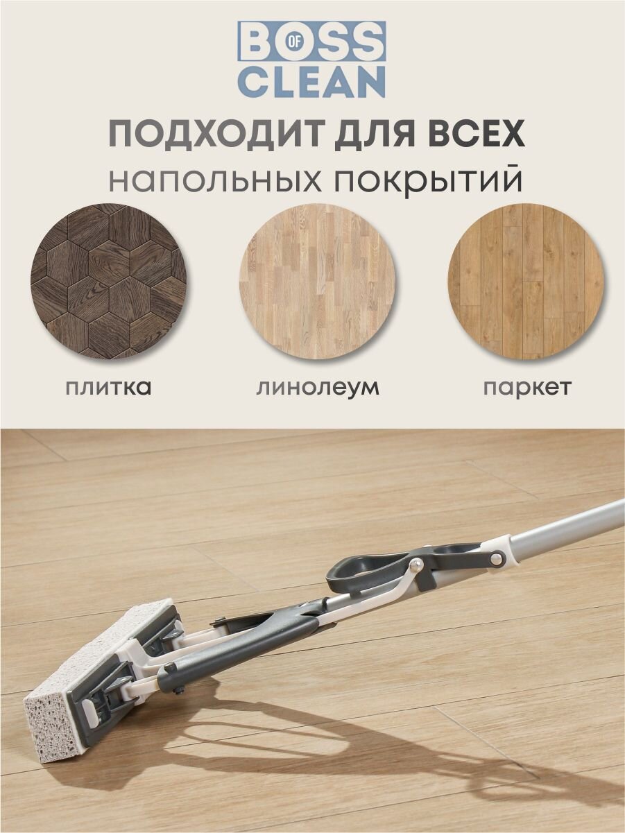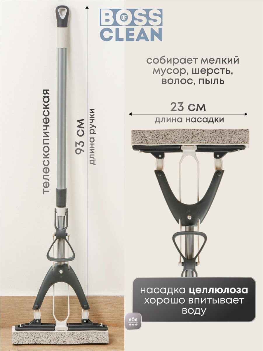 Швабра для пола Bossclean с насадкой из целлюлозы - идеальное решение для эффективной уборки Вашего дома. Этот универсальный инвентарь станет надежным помощником в борьбе с грязью и пылью на полу, а также на других поверхностях, таких как окна, плитка, потолок и стены.