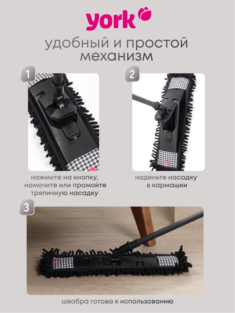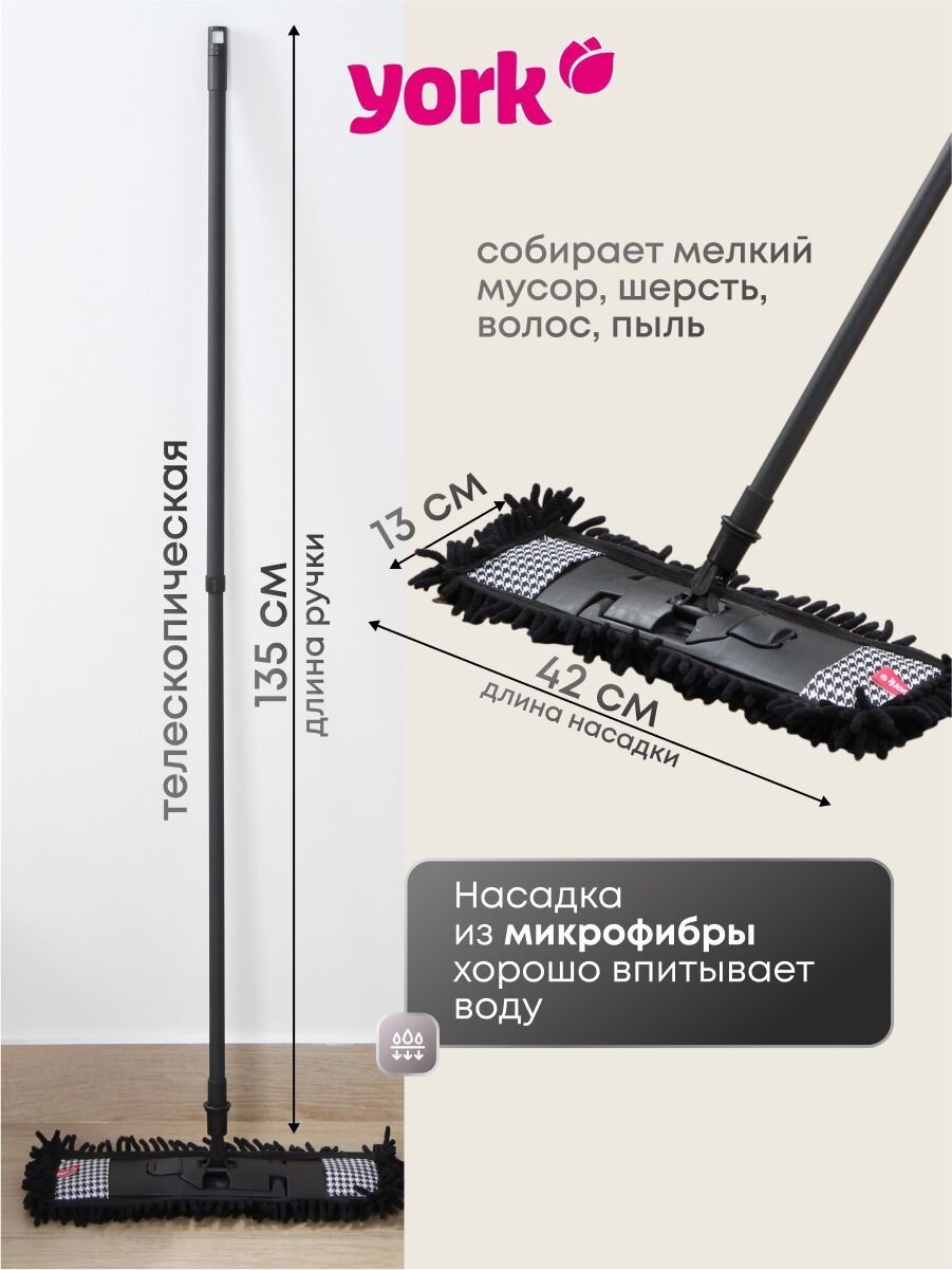Вы можете приобрести «Швабра МОП плоская, 135х42х13 см, телескопическая ручка, York, Пепита, 081302» и другие товары в нашем интернет-магазине в Казани по низким ценам и с бесплатным самовывозом.