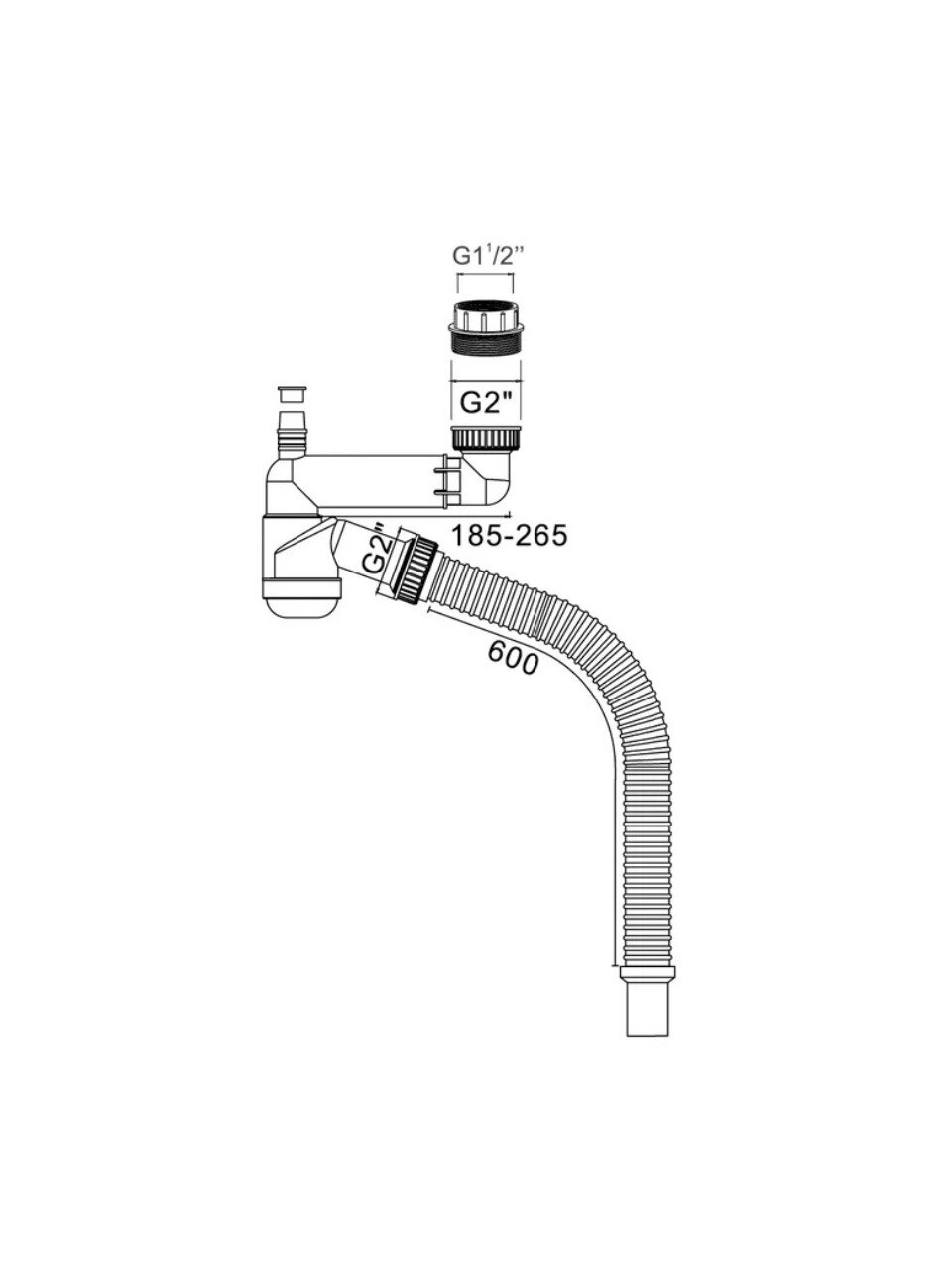 Диаметр подключения составляет 1" 1/2х40 мм, что подходит для большинства стандартных кухонных моек и обеспечивает герметичное соединение.