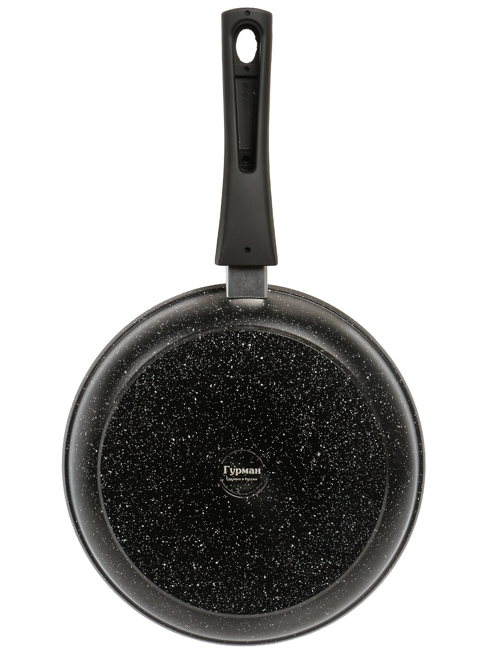 Сковорода Гурман FIT диаметром 24 см сочетает прочный литой алюминий и современное гранитное антипригарное покрытие. Благодаря высокой теплопроводности материал быстро нагревается, а толстое дно (5,2 мм) обеспечивает равномерное приготовление без деформации. Такой вариант идеально подойдет для жарки мяса, рыбы, курицы — продукты не прилипают, сохраняют вкус и сочность, а уход занимает минимум времени.
