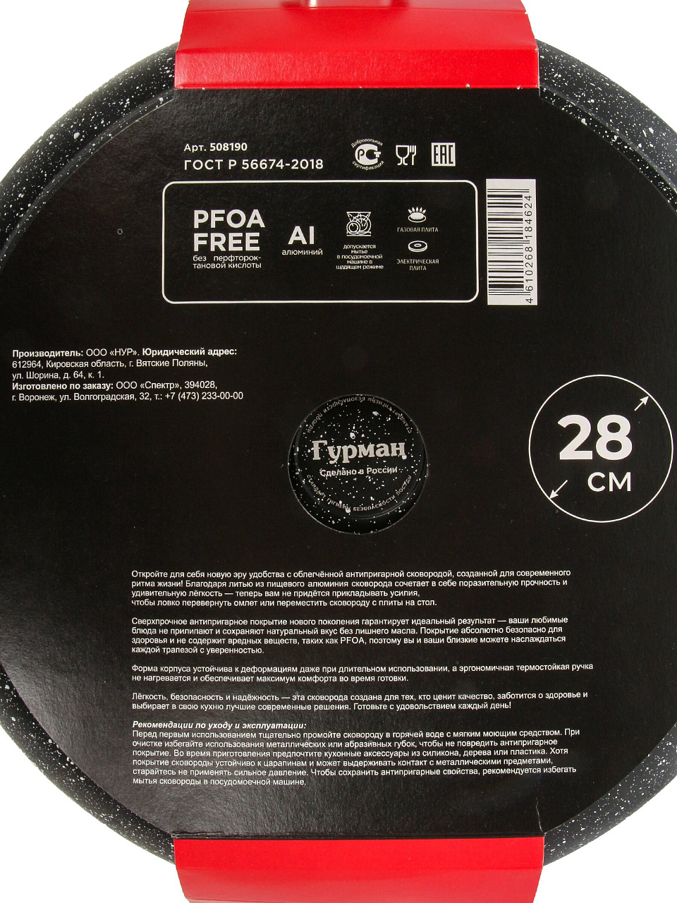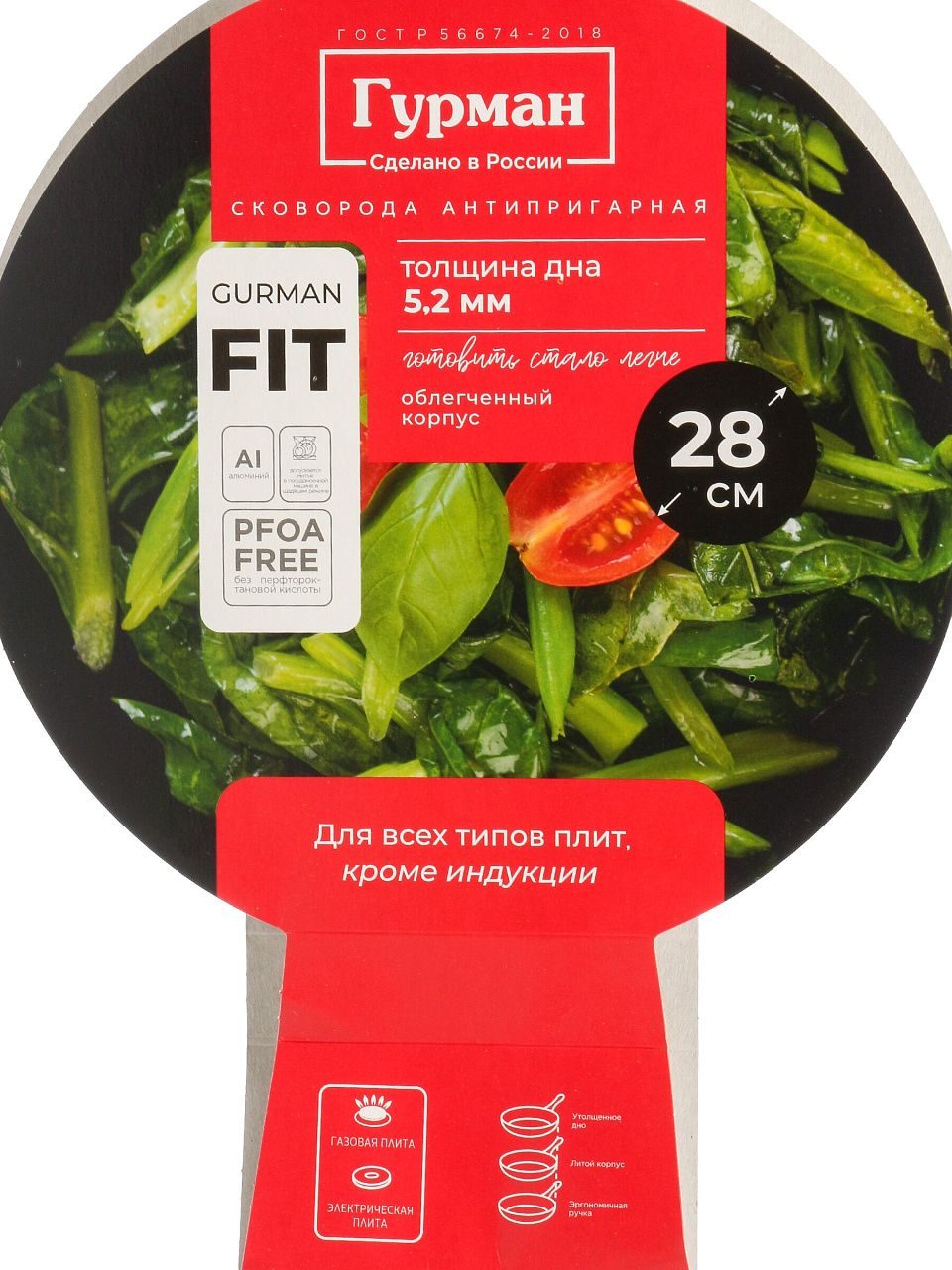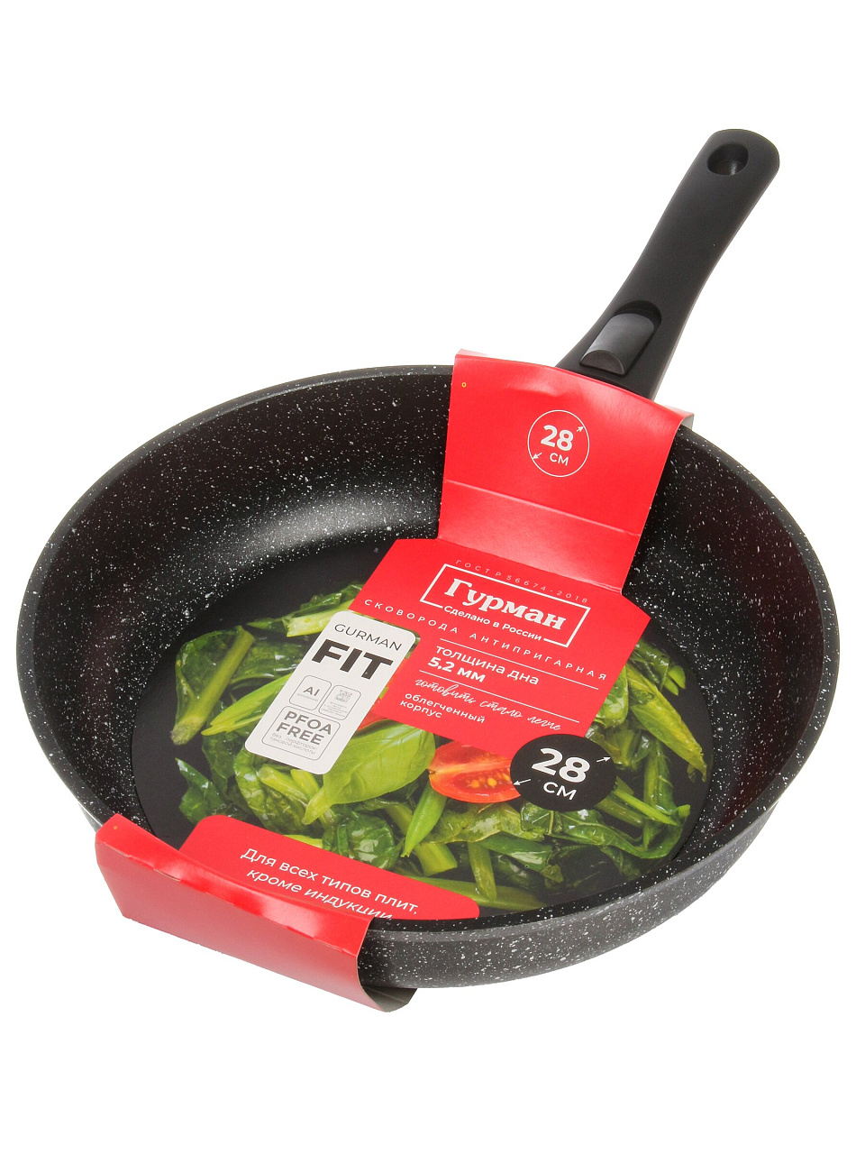 Сковорода алюминиевая 28 см с антипригарным гранитным покрытием Гурман FIT — глубокая универсальная модель со съемной ручкой для идеальной готовки дома и на даче.