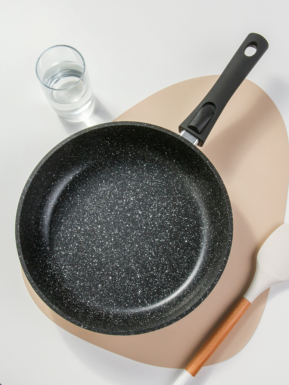 - Гранитное антипригарное покрытие — пища не пригорает, легко мыть, подходит для здорового питания.