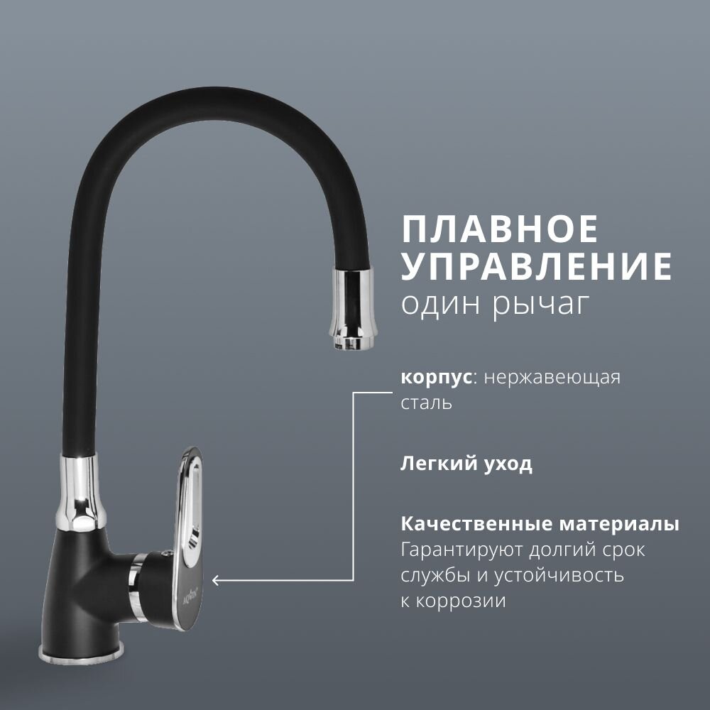 Смеситель для кухни Aqwin A41274-6: гибкий излив, современный дизайн, матовый черный цвет. Удобство и долговечность для стильной кухни по выгодной цене.