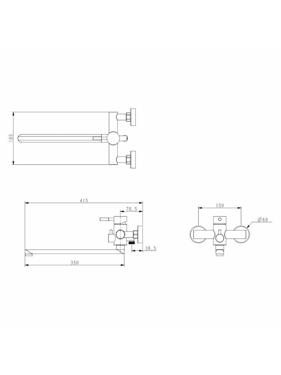 Межосевое расстояние для монтажа — 150 мм, диаметр отверстий — 60 мм. Устанавливается вертикально на 2 отверстия, подходит для большинства стандартных ванн.