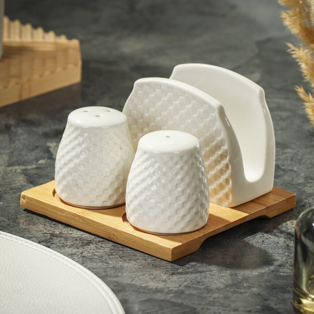 - Солонка, перечница, салфетница - керамика;