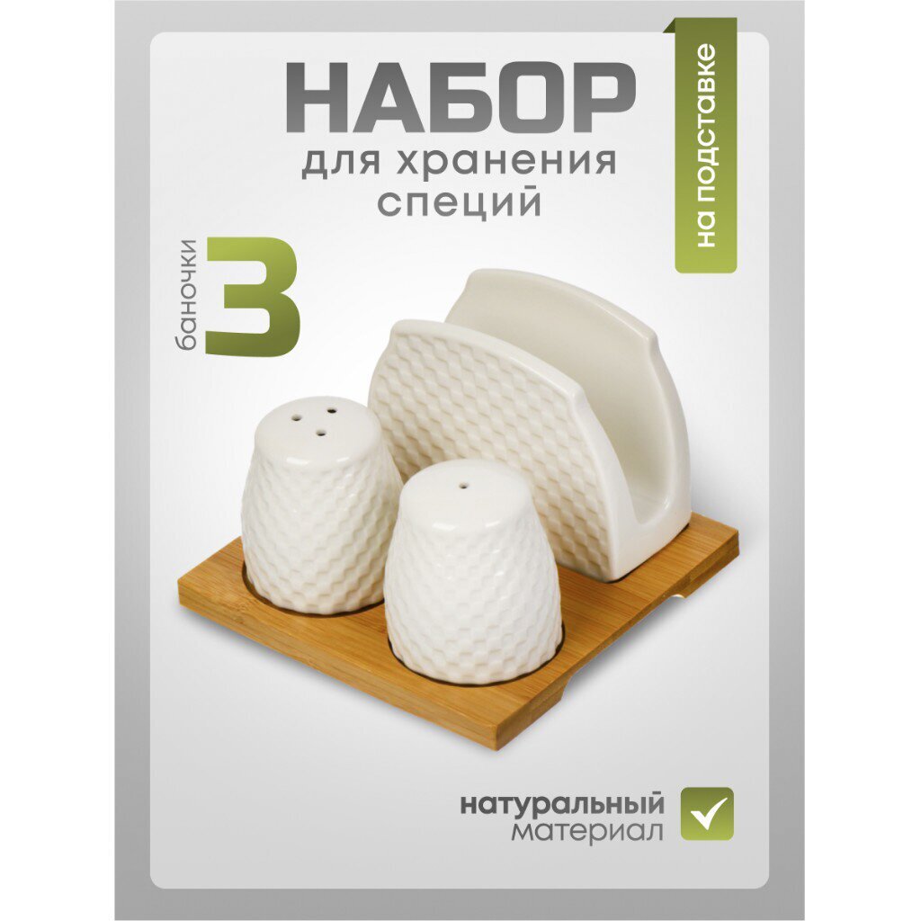 Вы можете приобрести «Набор для специй керамика, бамбук, 3 шт, на подставке, Кембридж, Y6-6462» и другие товары в нашем интернет-магазине в Нижнем Новгороде по низким ценам и с бесплатным самовывозом.