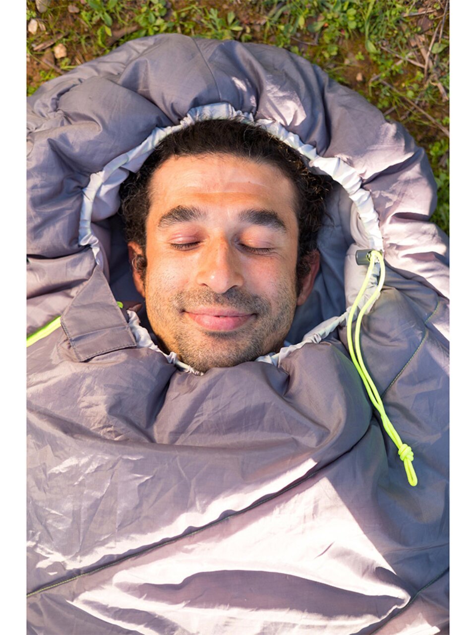 Кокон - отличается анатомической формой: широкий в плечах, сужающийся к ногам. Благодаря этому спальный мешок лучше облегает тело и сохраняет тепло. Все швы с внешней и внутренней сторон смещены друг относительно друга, что также препятствует потере тепла.