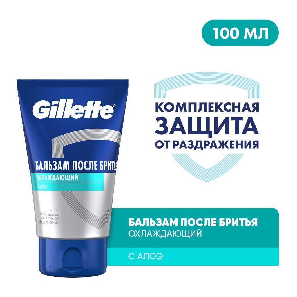 Бальзам после бритья Gillette Охлаждающий 100 мл: быстрое снятие раздражения и мгновенное ощущение свежести для комфортной кожи каждый день.