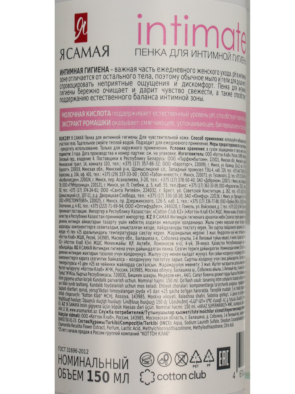 Какой объем у пенки для интимной гигиены «Я самая»?