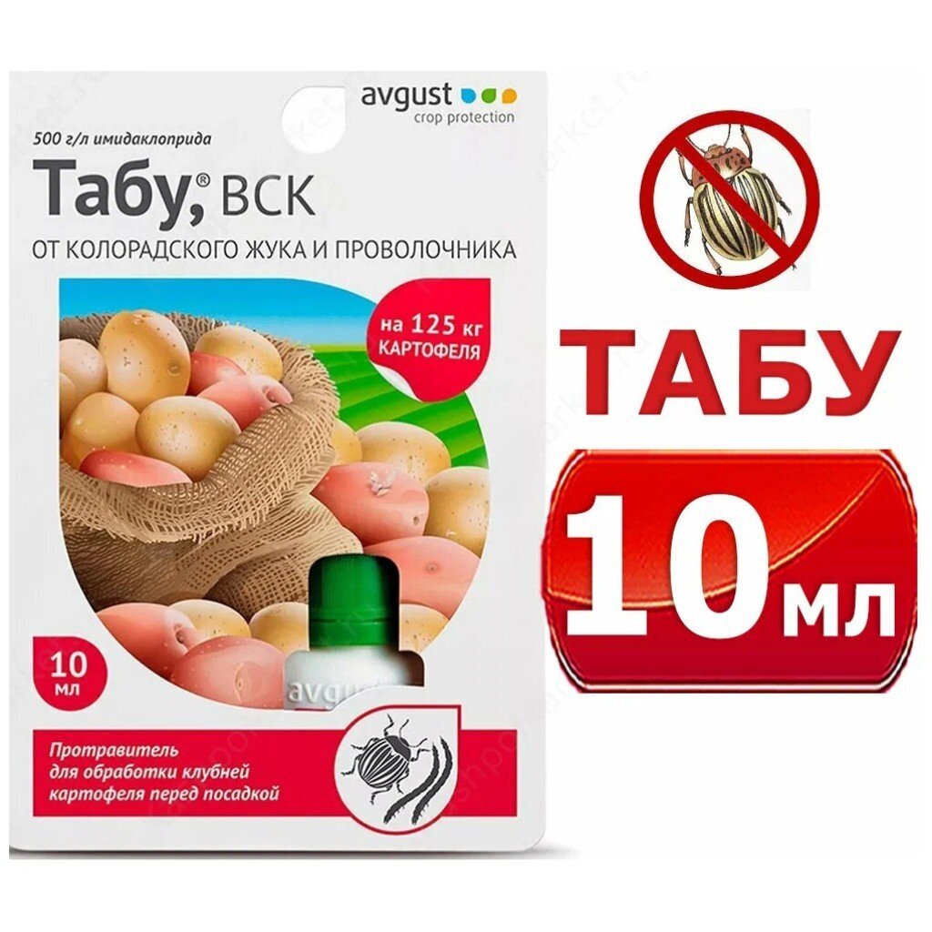 Вы можете приобрести «Инсектицид Табу, от колорадского жука, проволочника, протравитель клубней перед посадкой, жидкость, 10 мл, Avgust» и другие товары в нашем интернет-магазине в Обнинске по низким ценам и с бесплатным самовывозом.