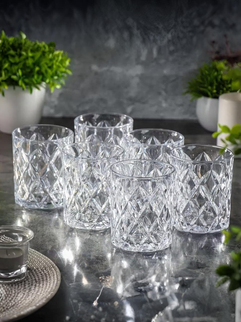 Стаканы для виски 340 мл Daniks Даймонд — набор из 6 прочных стеклянных рокс-стаканов для стильной сервировки и подарка. Идеально для ценителей классики.