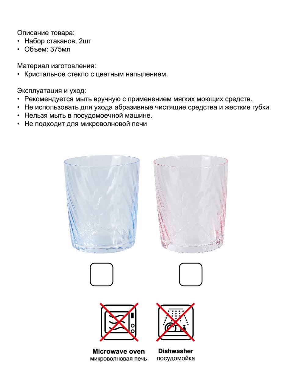 Объём каждого стакана — 375 мл. Подходят для воды, сока, лимонада, компота, универсальны для сервировки стола.
