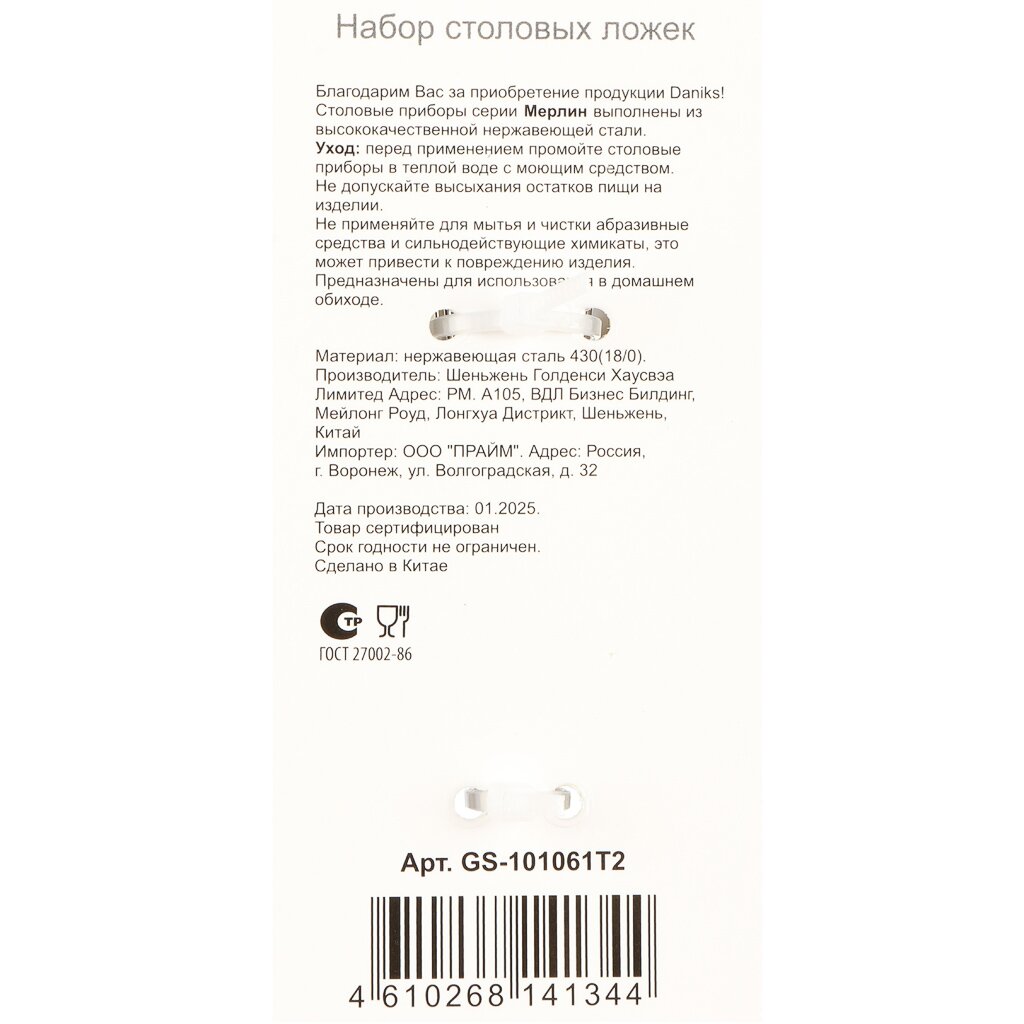 Ложка нерж сталь, 3 пр, столовая, Мерлин, Daniks