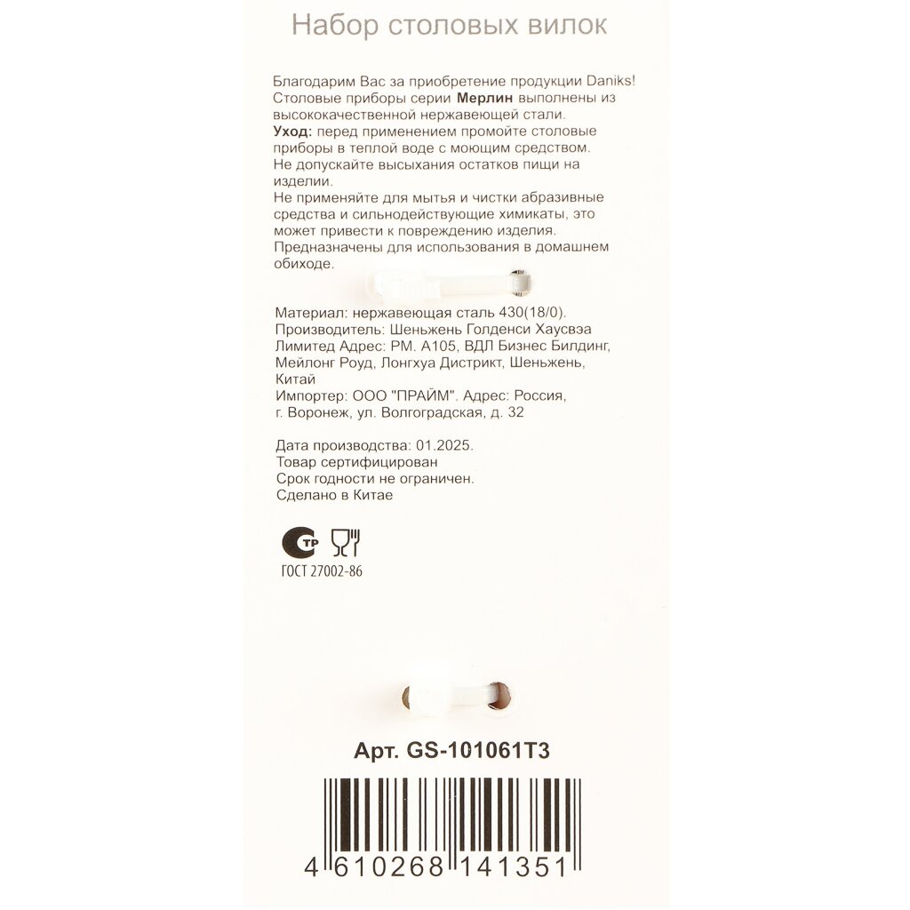 Вилка нерж сталь, 3 пр, столовый, Мерлин, Daniks