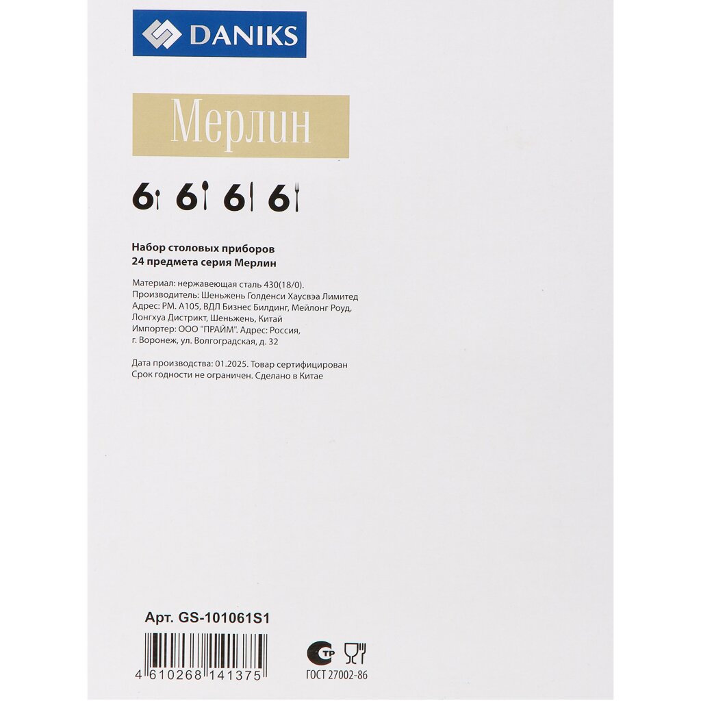 Набор столовых приборов нерж сталь, 24 пр, Мерлин, Daniks