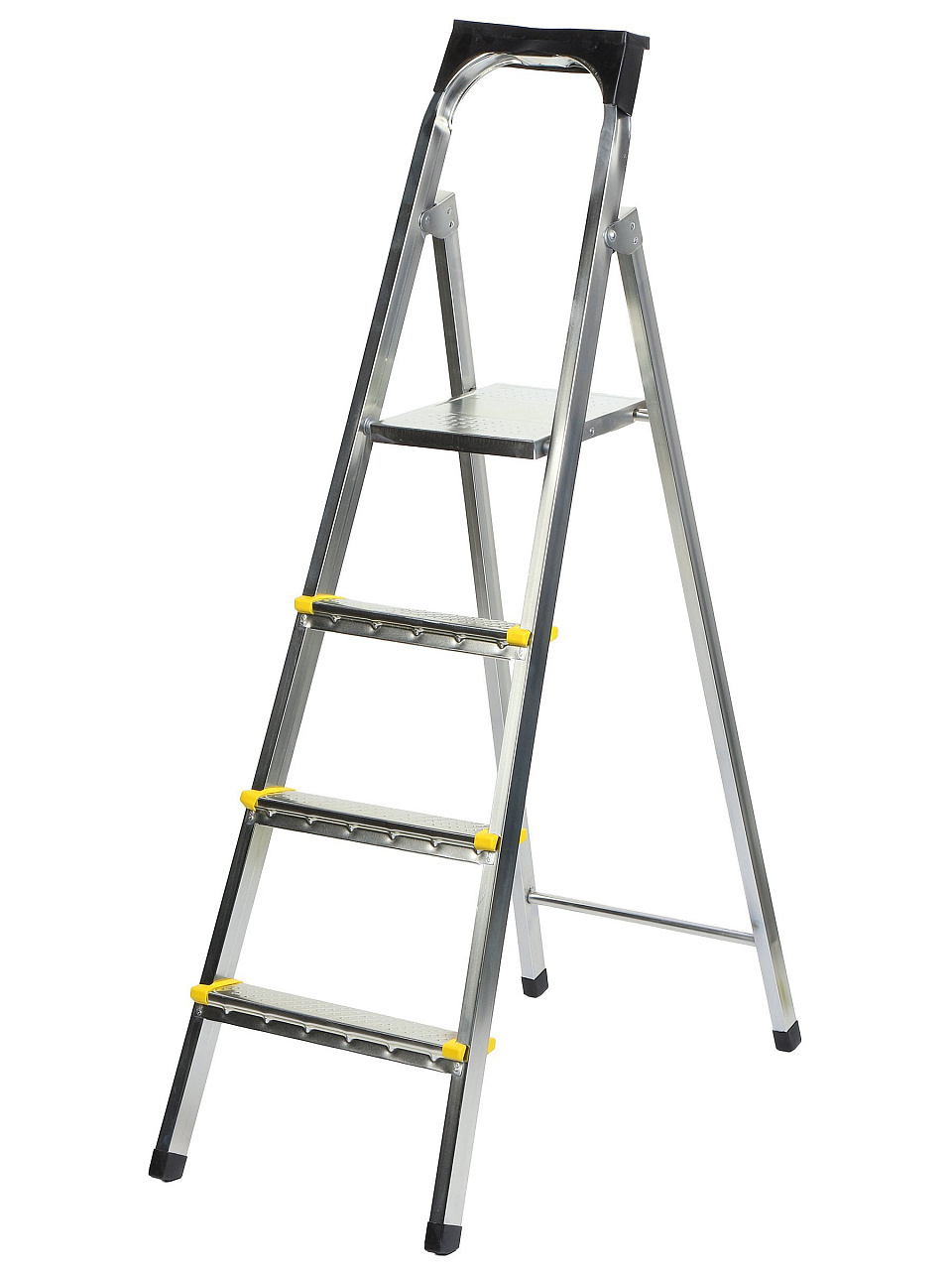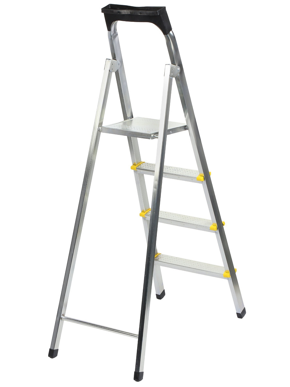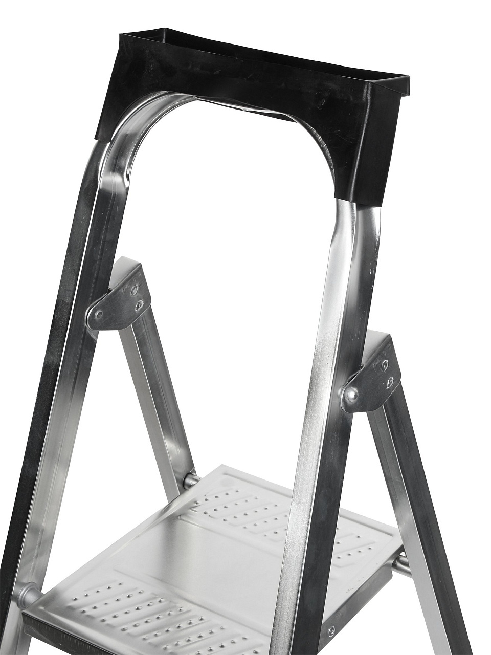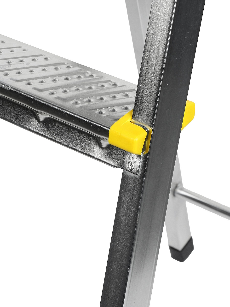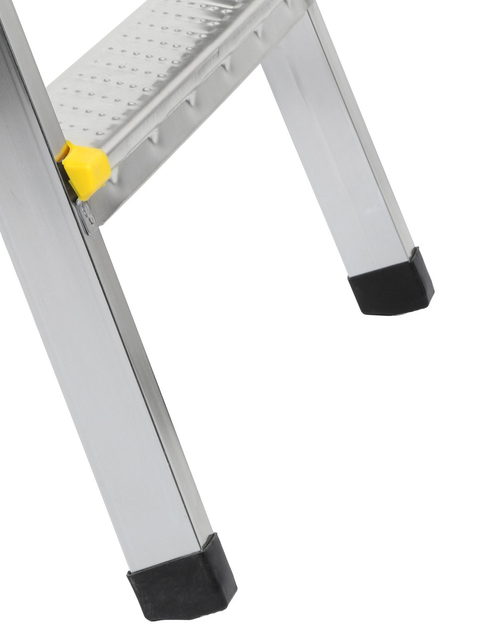 Тетивы стремянки выполнены из прочного стального профиля, защищенного от коррозии эпоксидной порошковой эмалью. Задняя и передняя нога соединены между собой. Рабочая площадка выполнена из оцинкованной стали. Ступени имеют рифленую поверхность и изготовлены из высокопрочного алюминиевого профиля. Башмаки изготовлены из высокопрочного пластика..