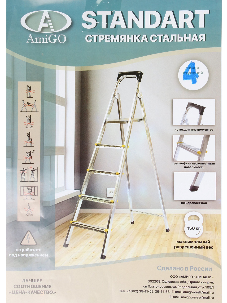 Вы можете приобрести «Стремянка 1 секция, 4 ступени, металл, 0.87 м, 150 кг, Amigo, ЛС1004» и другие товары в нашем интернет-магазине в Смоленске по низким ценам и с бесплатным самовывозом.