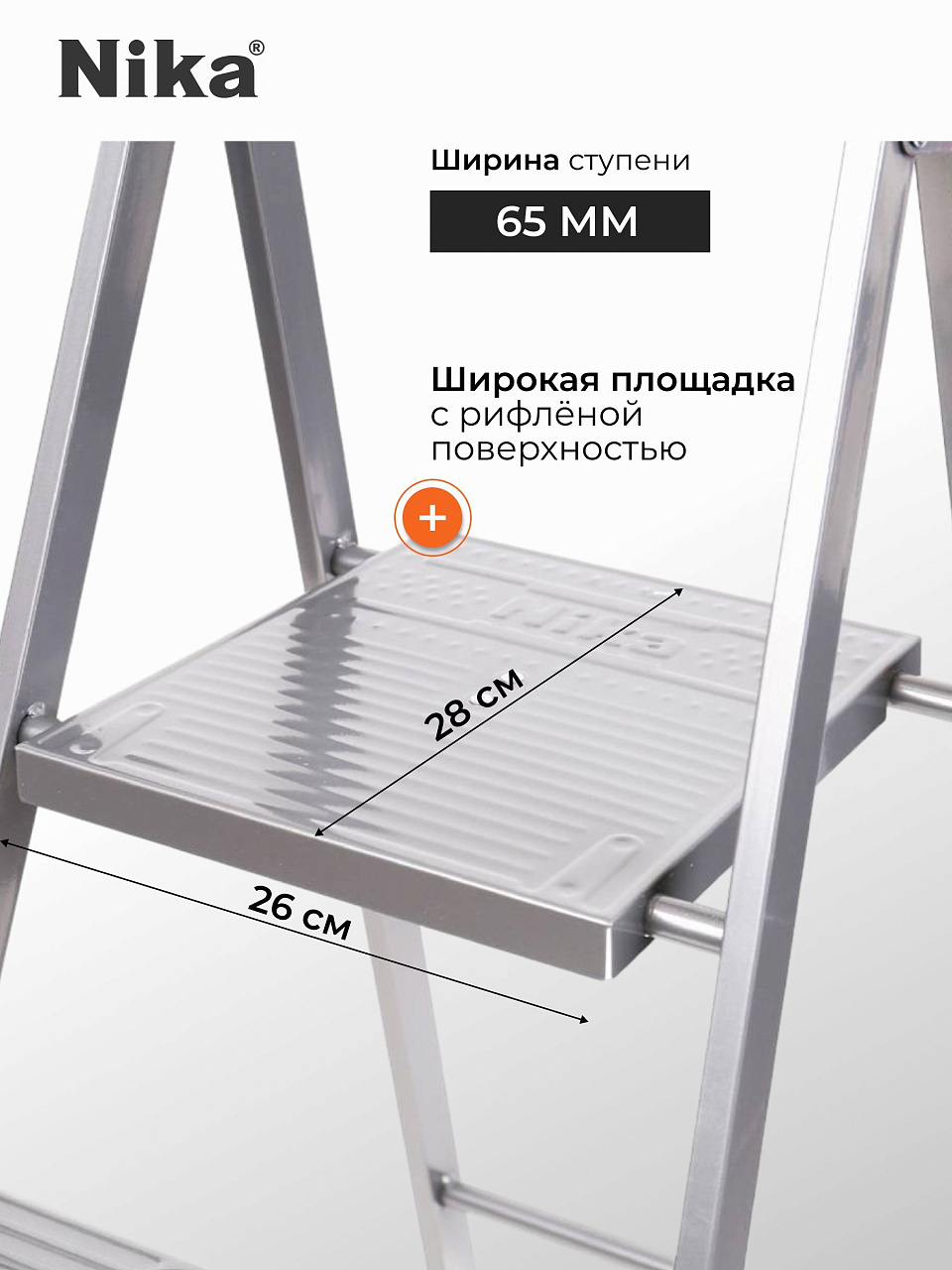 - Широкая безопасная площадка со встроенными вставками противоскольжения.