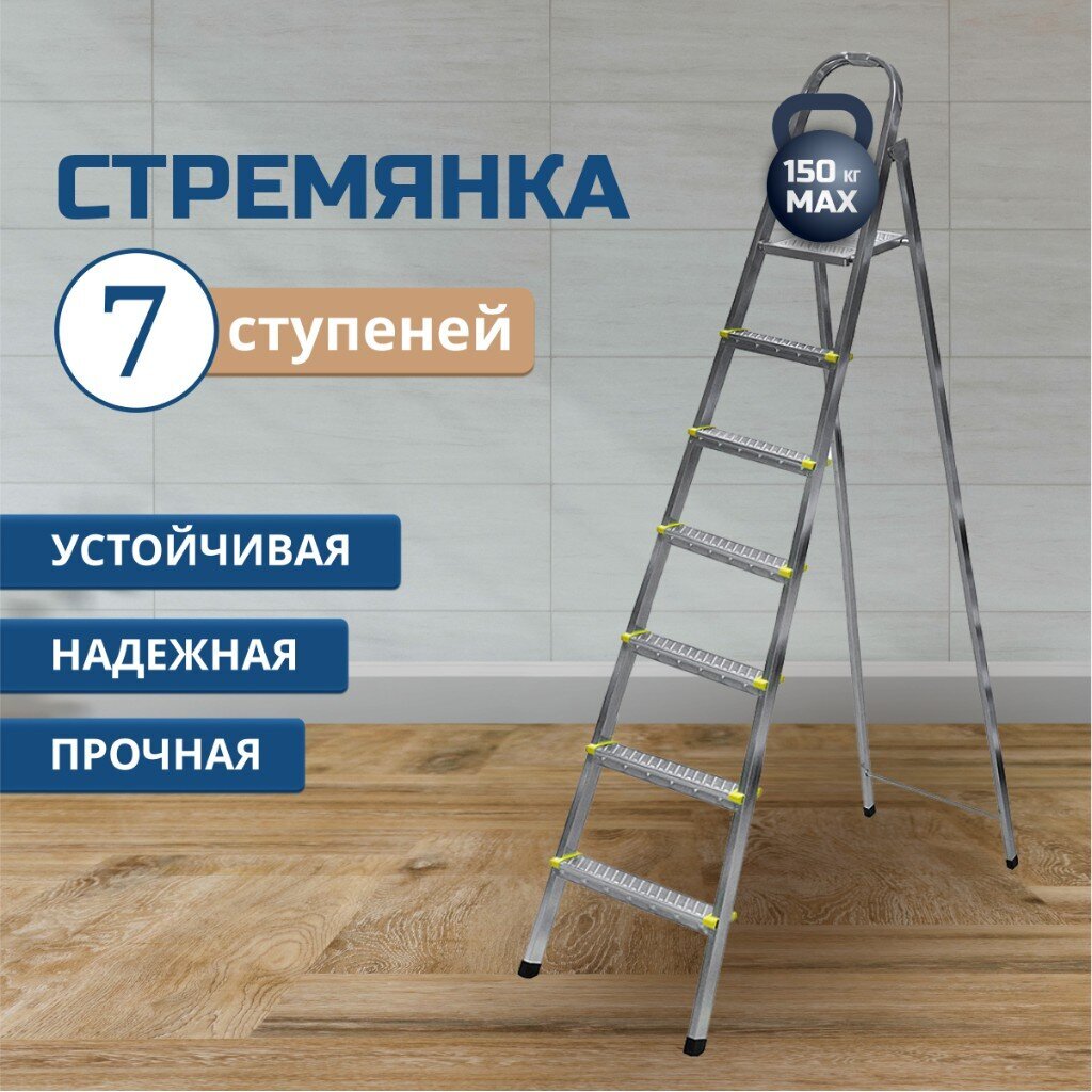 Вы можете приобрести «Стремянка 1 секция, 7 ступеней, металл, 1.54 м, 150 кг, Amigo, ЛС1007» и другие товары в нашем интернет-магазине в Казани по низким ценам и с бесплатным самовывозом.