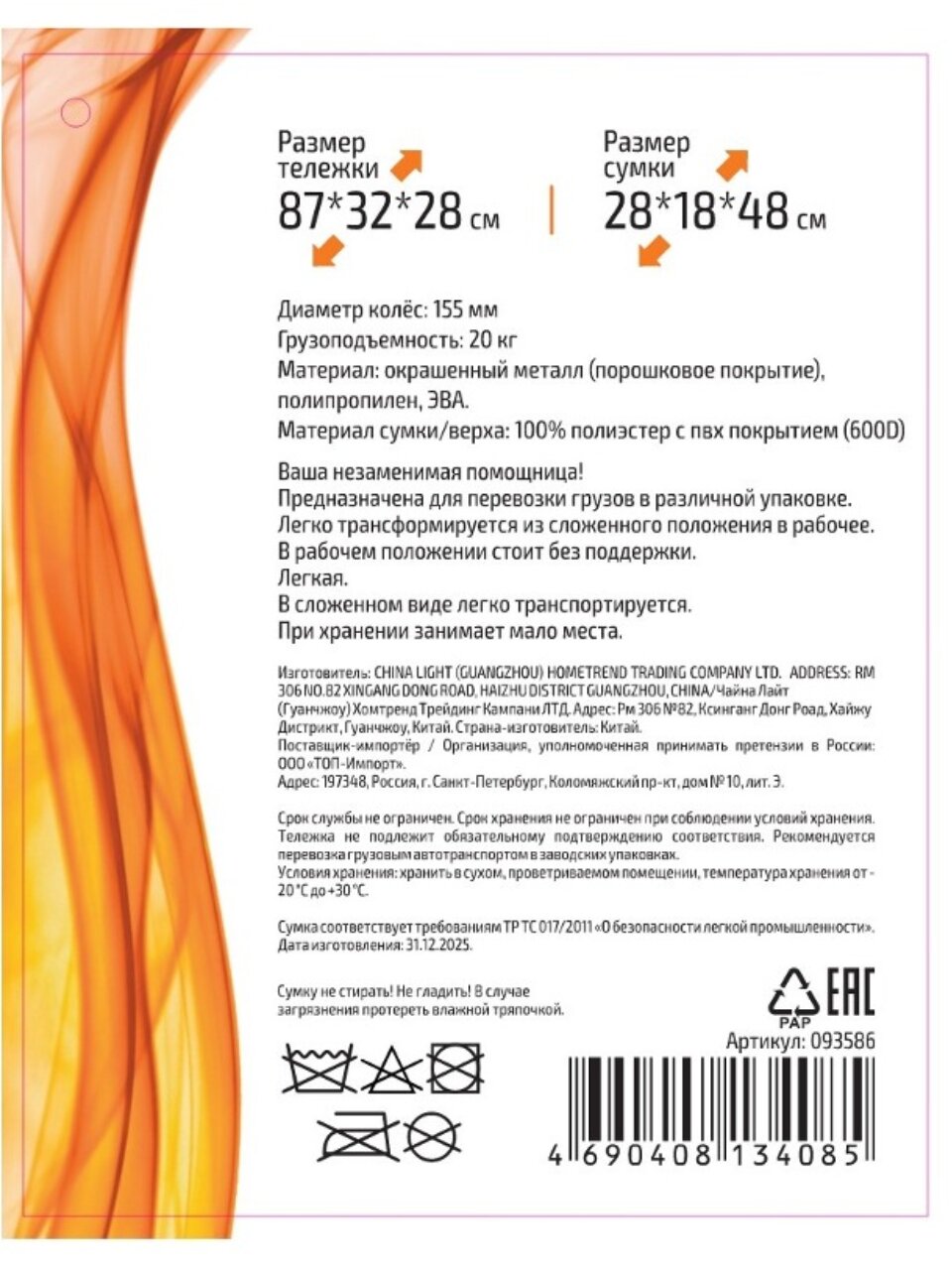 Вы можете приобрести «Тележка 87х32х28 см, металл, 100% полиэстер, 20 кг, WR3030, Рыжий кот, Бриз, 093586» и другие товары в нашем интернет-магазине в Ставрополе по низким ценам и с бесплатным самовывозом.