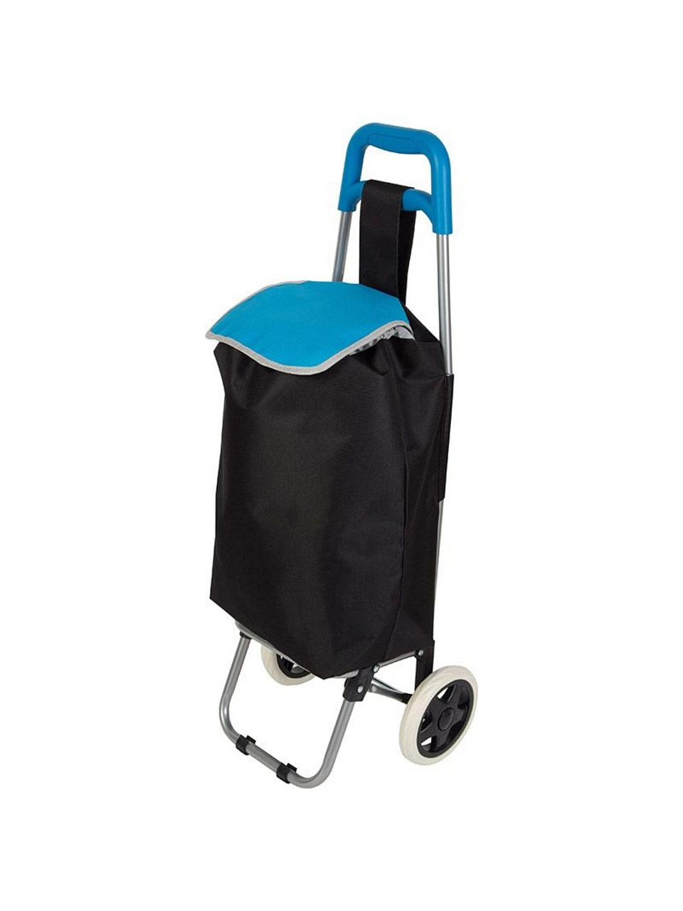 Габариты тележки — 87×35×28 см, размеры сумки - 28х18х48 см, диаметр колеса - 155 мм, материал — металл и 100% полиэстер, цвет — черный. Объем ~17 л. Модель отличается прочной рамой, влагостойкой тканью и эргономичной ручкой для удобства транспортировки.