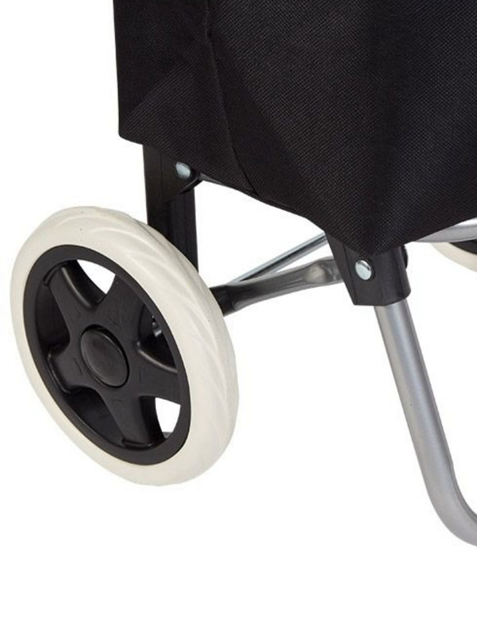 Тележка рассчитана на нагрузку до 20 кг благодаря металлической раме и плотному полиэстеру. Это оптимально для перевозки продуктов, инструментов и других бытовых грузов.