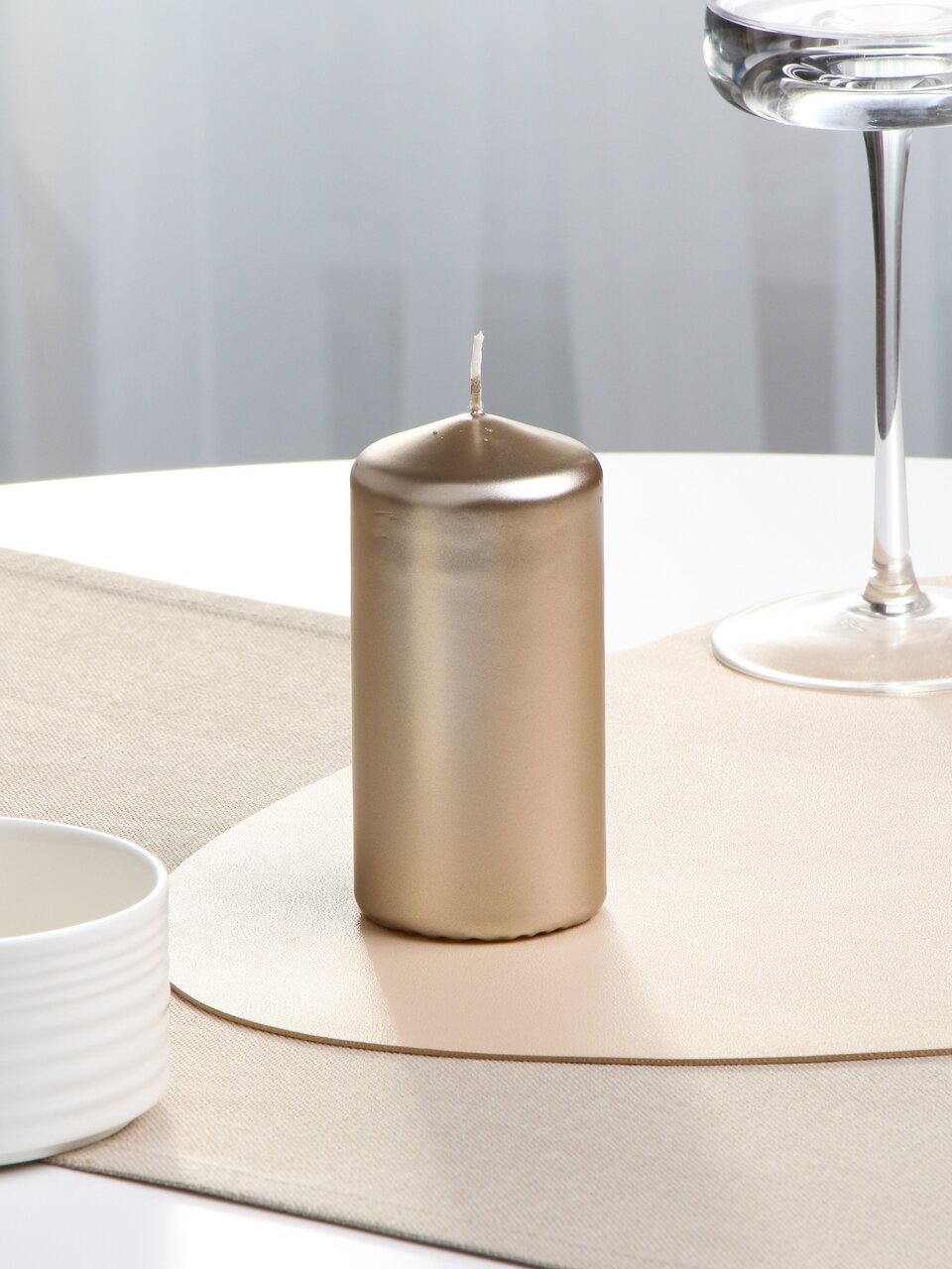 Декоративная свеча Bartek Candles 6х12 см — стильный акцент для новогоднего декора и уютных вечеров. Эффект металлик, универсальный капучино, идеальна для подарка.