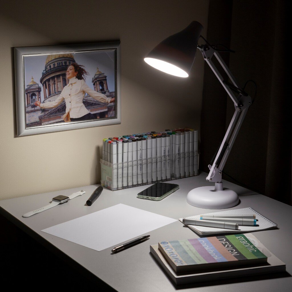 Настольный светильник ЭРА N-123-Е27-40W-W трендового дизайна с классической конструкцией может использоваться с разными источниками света - лампой накаливания, компактной люминесцентной лампой (КЛЛ) или светодиодной (LED) лампой. Выключатель на проводе. Устойчивое основание. Высота плафона регулируется двухсекционной сгибающейся стойкой, направление света - поворотом и наклоном плафона в любом направлении. Лампа в комплект не входит.