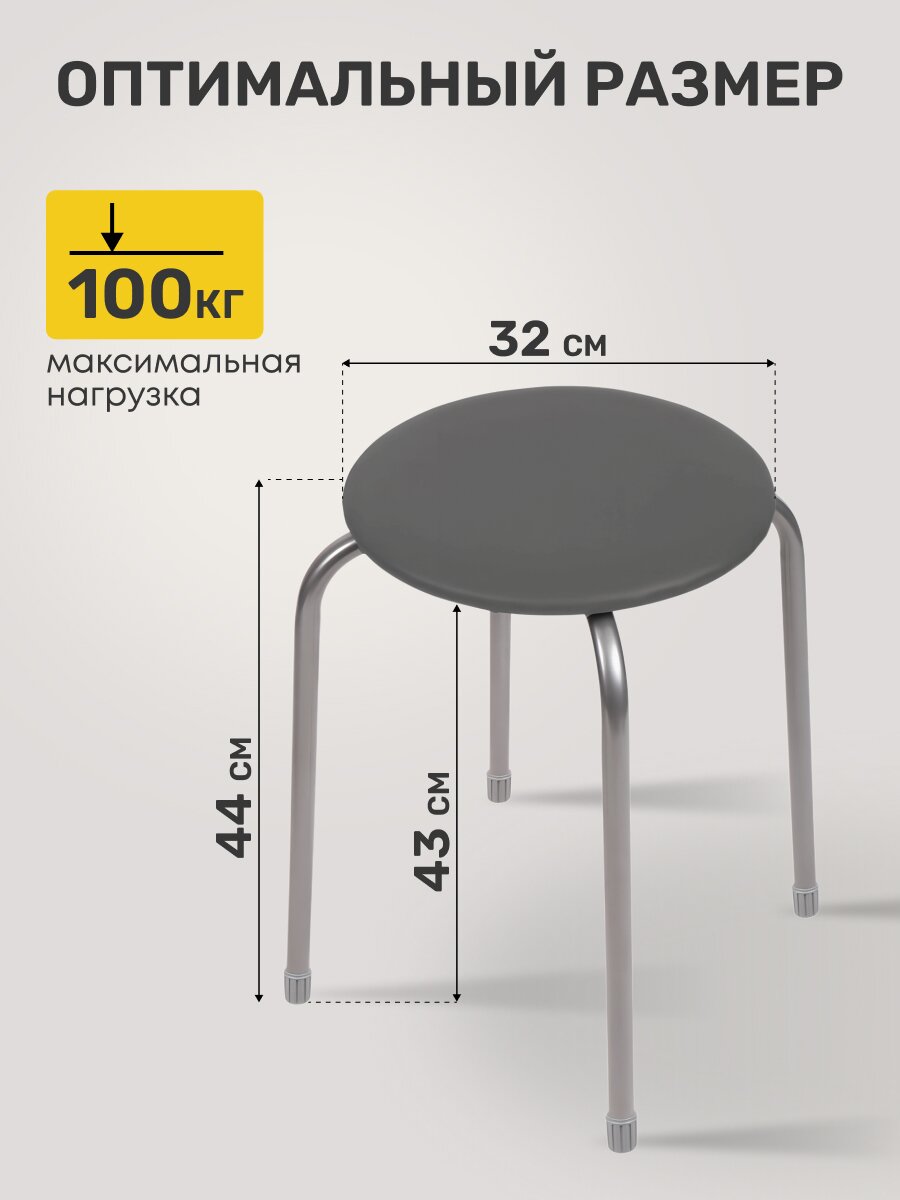 Табурет Nika 320х320х440 мм — компактное и прочное решение для кухни, дачи или офиса: выдерживает до 100 кг, современный дизайн, легко чистится.