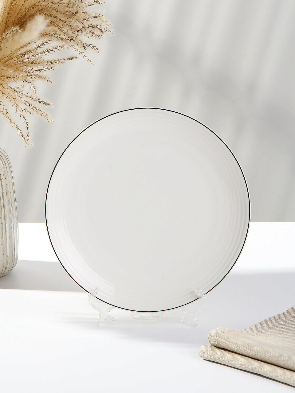 - Надёжный фарфор: диаметр 25 см, устойчив к сколам, подходит для посудомоечной машины и СВЧ