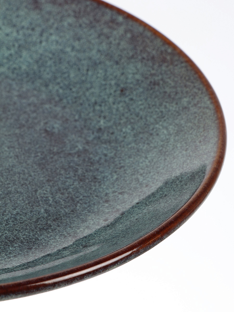 Тарелка выполнена из прочной керамики, имеет круглую форму, однотонный синий цвет и универсальный дизайн без рисунка.