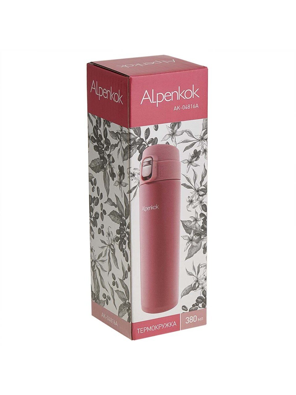 Термокружка нержавеющая сталь, 0.38 л, Alpenkok, колба нержавеющая сталь, вакуумная, розовая, AK-04816A
