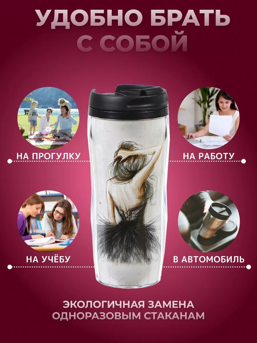 Термокружка Daniks "Балерина" 0.38 л — яркое решение для города, дома и автомобиля: удобно пить на ходу, сохраняет температуру до 2 часов, доступна по цене.