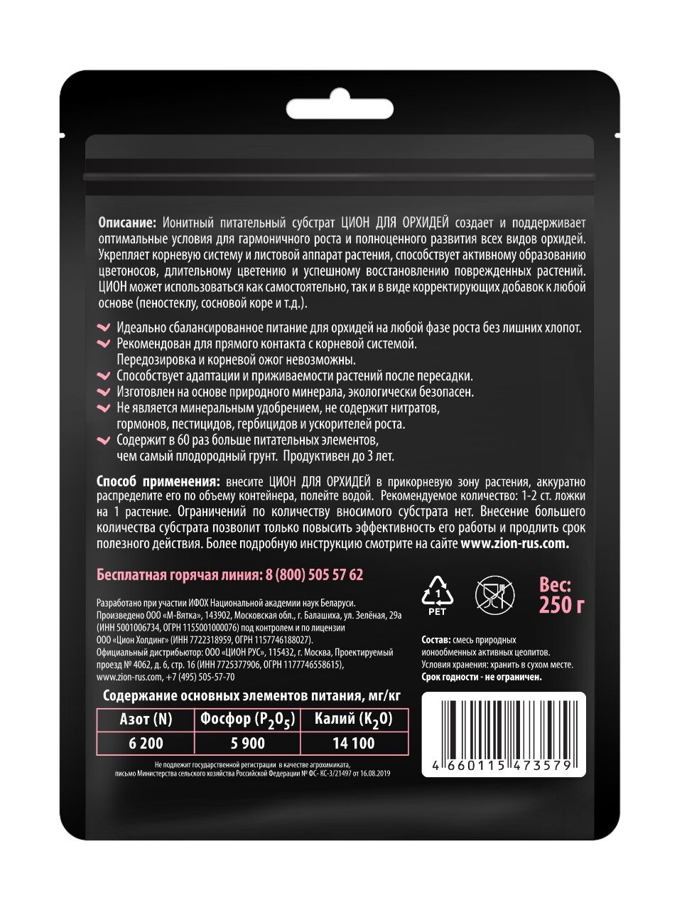 - специально разработанный минеральный состав: поддерживает здоровый рост и цветение орхидей;