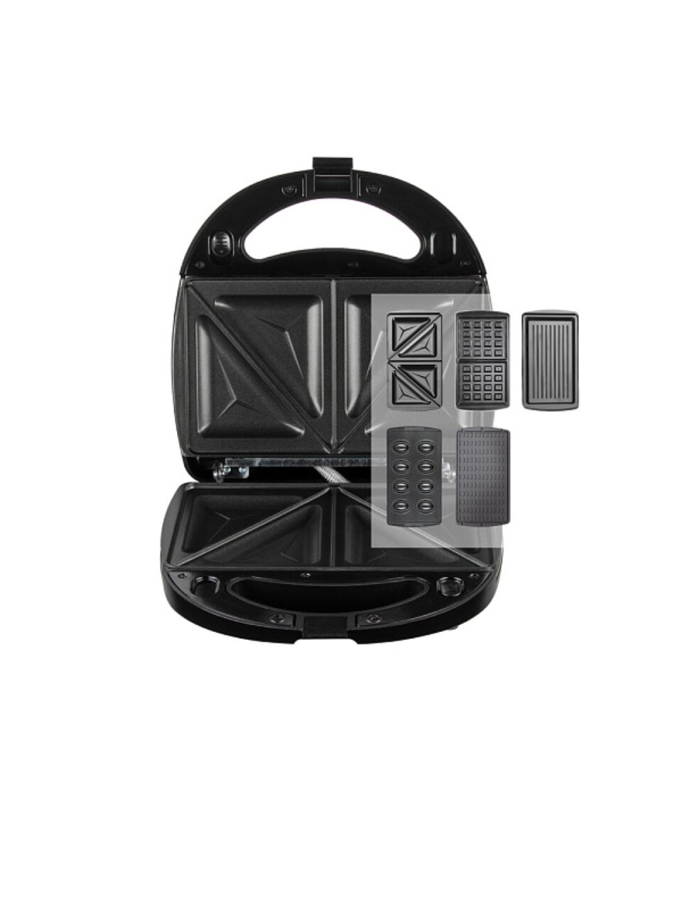 - 3 сменные панели: готовьте вафли, бутерброды и гриль-блюда в одном устройстве