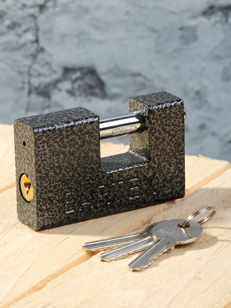 Замок навесной BARTEX чугунный 80мм Гаражный, блистер, 3 ключа, 504664