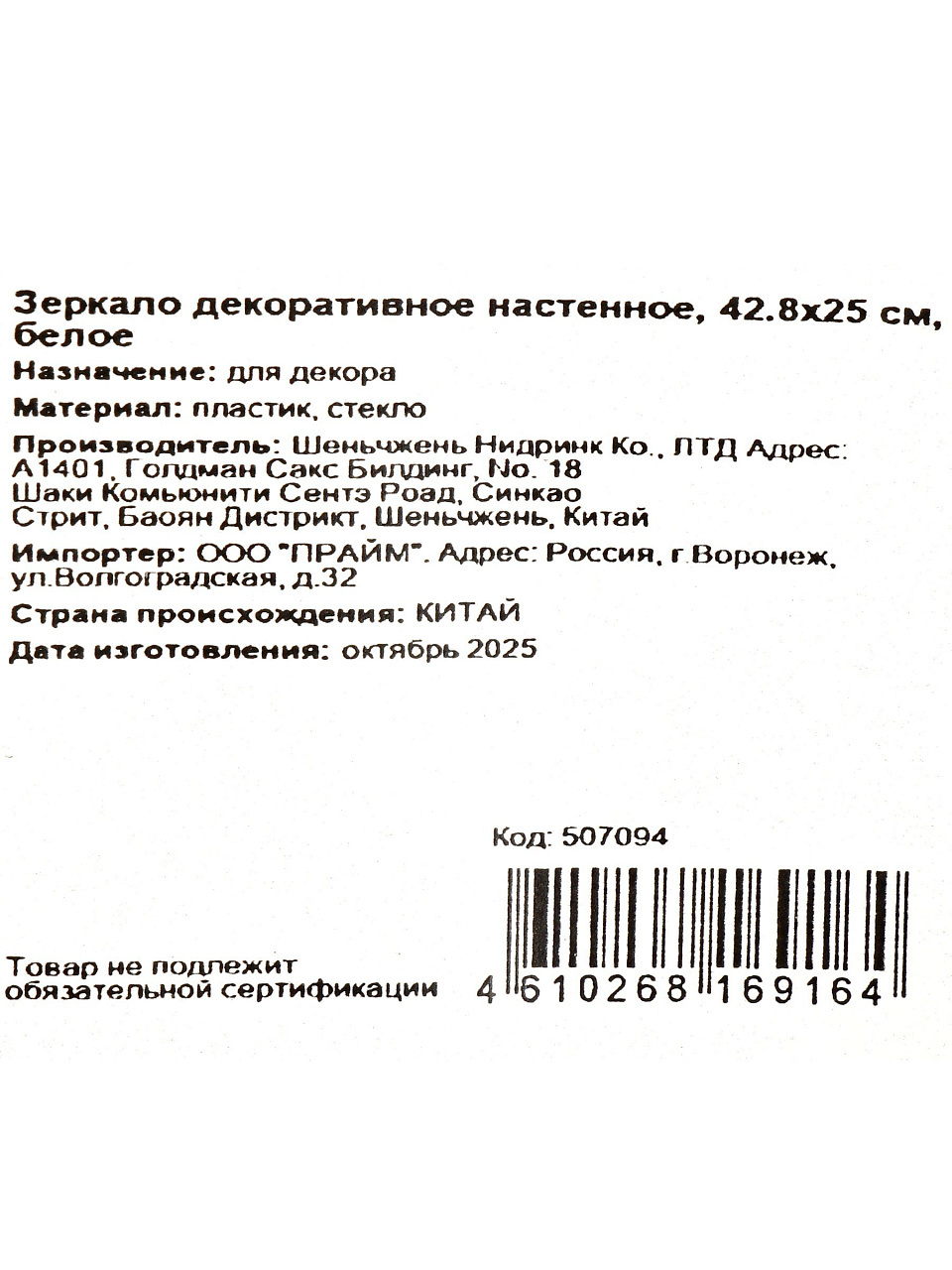 Вы можете приобрести «Зеркало декоративное настенное, 42.8х25 см, пластик, белое, Y4-11076» и другие товары в нашем интернет-магазине в Серпухове по низким ценам и с бесплатным самовывозом.