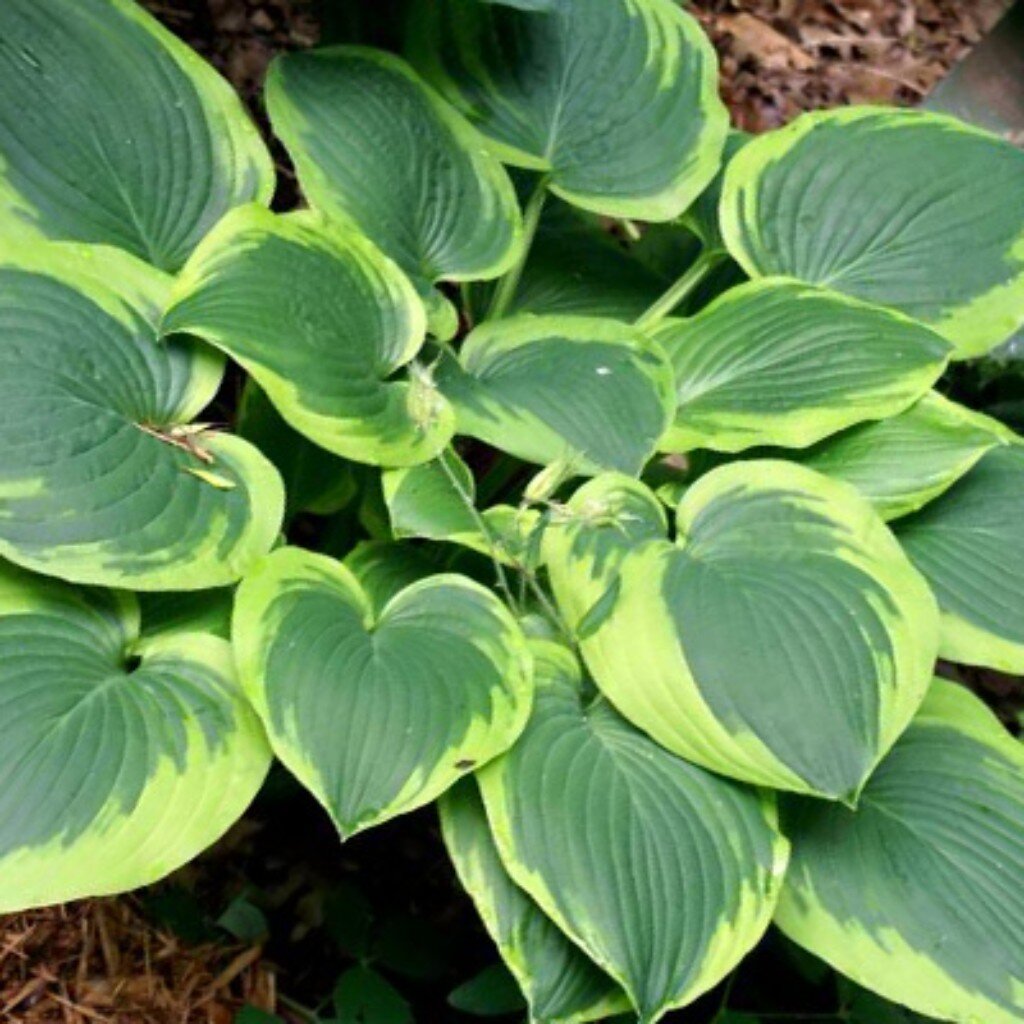 Вид — хоста, сорт — гибридная Абиква Мунбим, цвет — насыщенный зелёный, страна продавца — Германия, время посадки — весна, условия — тень, влага.
